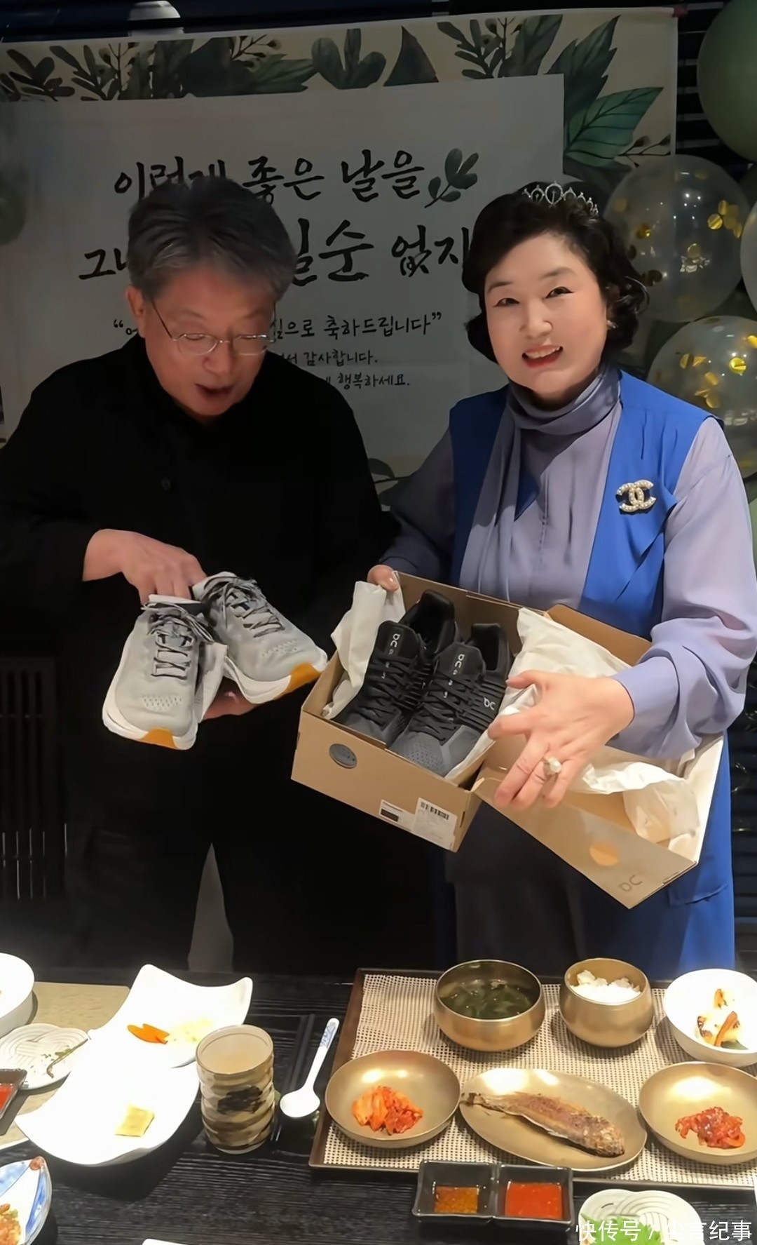 生日宴还有收礼物环节,每个到场的人都要为生日主角送上一份礼物,李多海公公送了婆婆一个包包,李多海父母送了亲家夫妇俩一人一双鞋。
