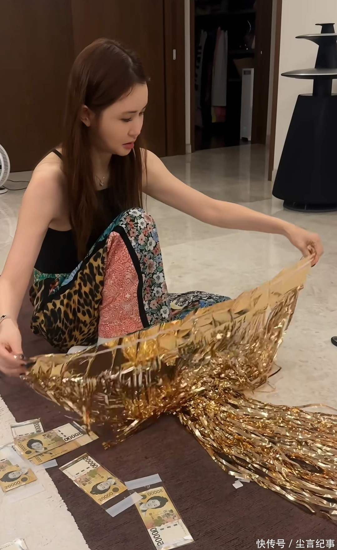 李多海和婆婆的关系很好,她在参加婆婆生日宴之前还在家里布置了一个惊喜,画面中,她和老公坐在客厅地毯上,手里拿着彩带还有一些韩元,打算弄个小装置给婆婆惊喜。